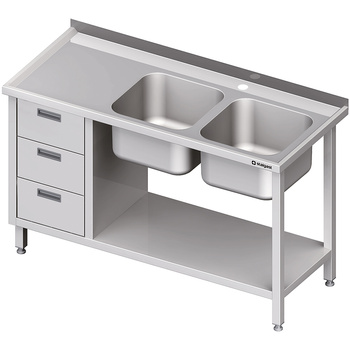 Stół ze zlewem 2-kom.(P), z blokiem trzech szuflad i półką 1600x600x850 mm