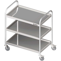 Wózek kelnerski ze stali nierdzewnej bez rączek, skręcany, 3-półkowy, płaski